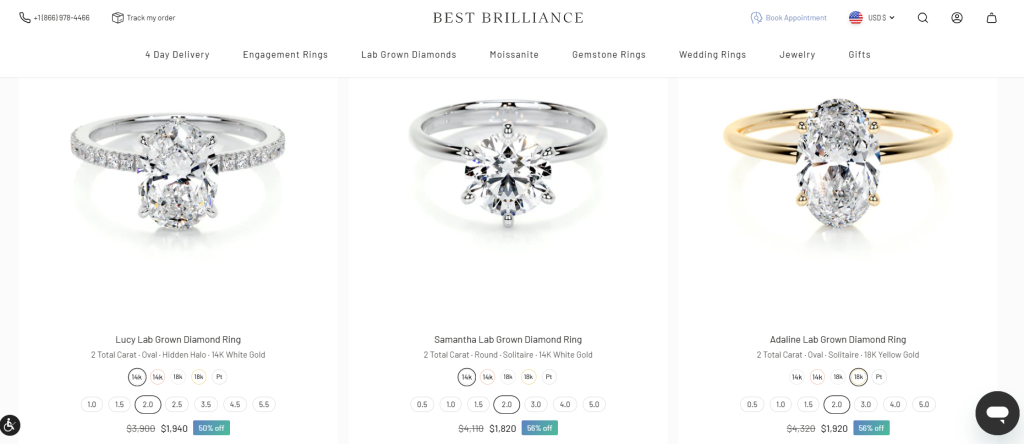Best Brilliance offers excellent customer service, including the option to schedule virtual appointments with a trained gemologist who can help you through the complicated process of buying a diamond. They also have excellent customer service through chat and phone, and they’ll happily guide you and offer advice.