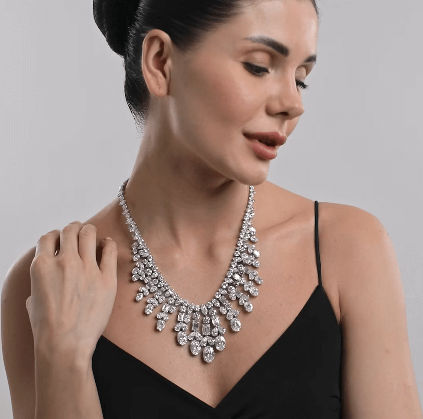 Prices start at around $10,000 and go above $200,000. But for that, you get a lot of diamond carats. The most expensive and heavy pieces sport over 200-carat total diamond weight. That is a lot!